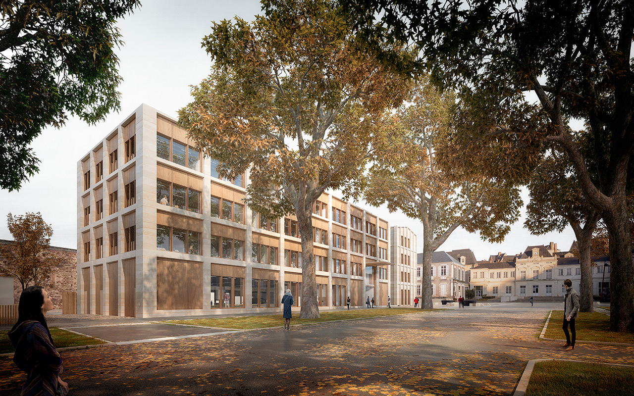 L’architecture s’est également attachée à exprimer une attention particulière aux enjeux environnementaux. Face à ces objectifs, l’utilisation de la pierre de tuffeau en façade s’est imposé rapidement comme une évidence, tant pour les deux bâtiments. Le résultat offre deux édifices ancrés dans leur patrimoine culturel et néanmoins résolument contemporains.